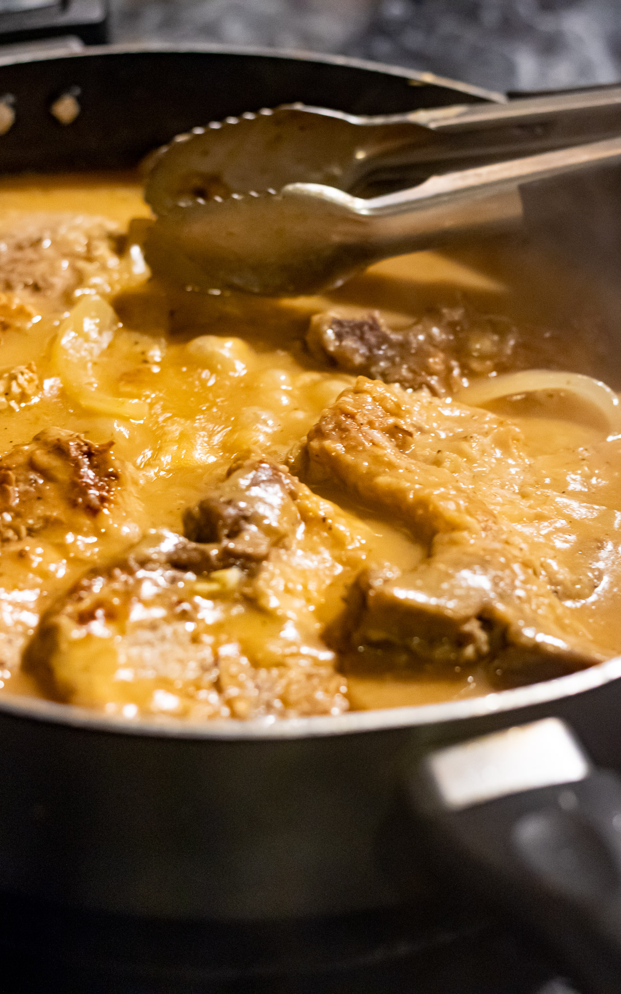 Pan-fried and smothered in a savory scratch onion gravy, these southern style Pork Chops are going to be a family favorite any night of the week!