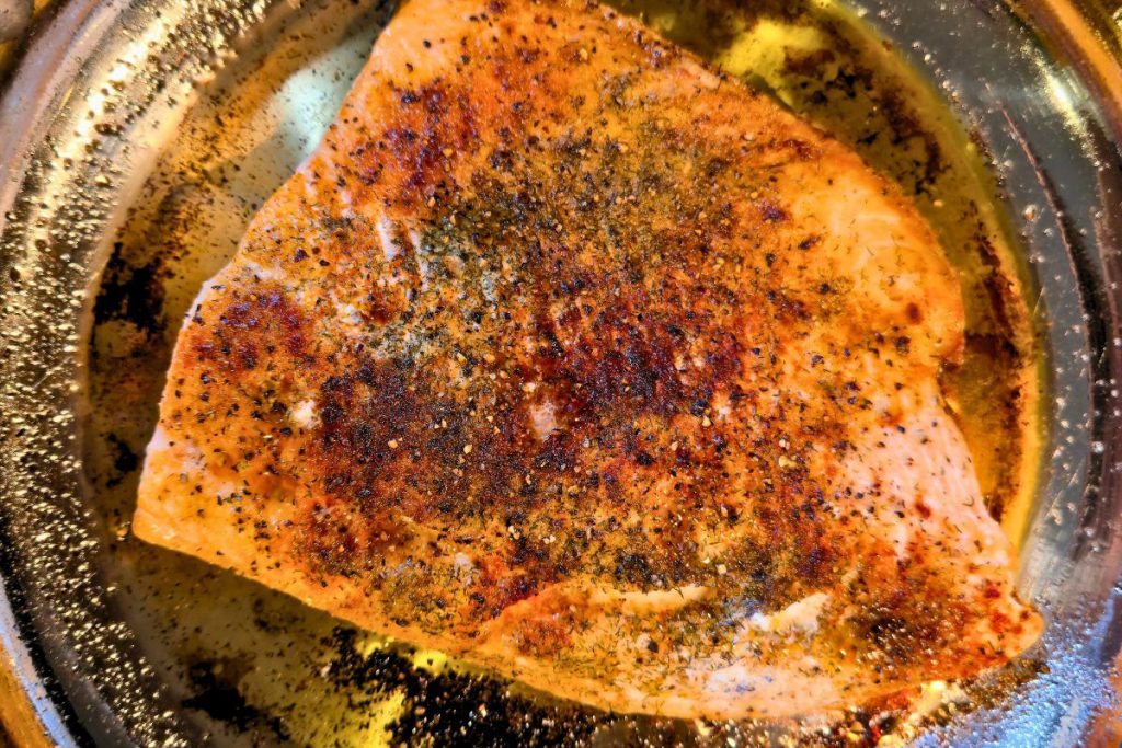 - Make sure salmon is dry and pan is hot to prevent sticking.